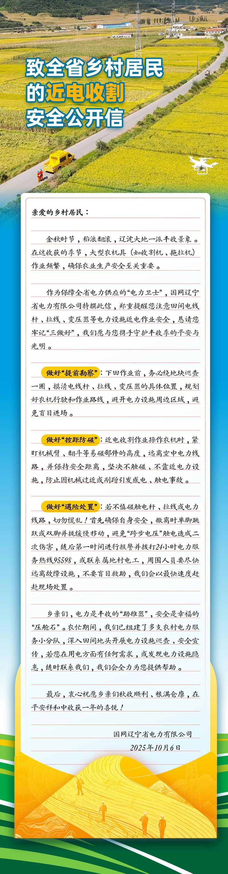 致全省鄉(xiāng)村居民的近電收割安全公開信